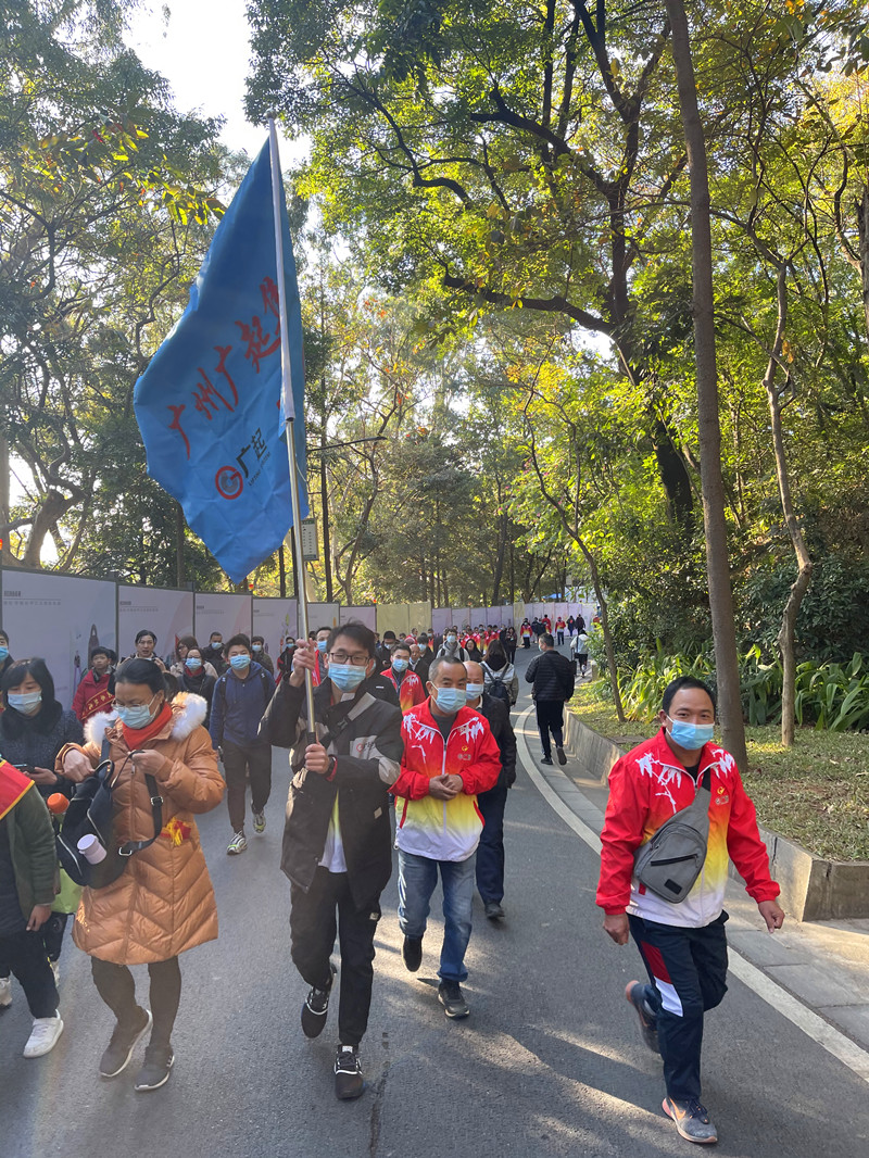 上午9时,两个会场的员工准备完毕,着装整齐、精神饱满地合影留念,一起喊出今年的登山活动口号“2021,创新谋发展,同心赢未来”,响亮的口号声,喊出了广起人坚定创新发展信念,同赢未来的美好愿景。一声出发,员工们高举公司的旗帜,迈步向山顶进发。