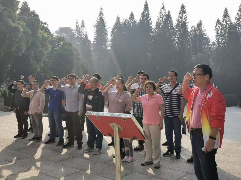 2019年11月24日上午9:00,广起集团全体党员在广州烈士陵园集合参加“不忘初心,牢记使命”主题教育活动。活动中,由新任党支部书记邝伟英带领全体党员,在烈士陵园正门大枪雕像前重温入党誓词,党员们精神抖擞,誓言铿锵有力,表现了忠党爱党的坚定决心。