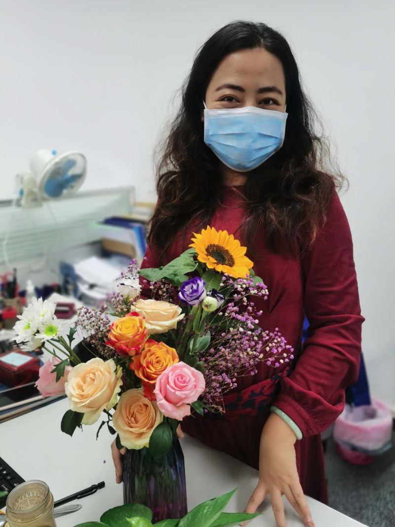 活动在温馨、快乐的氛围中圆满结束了,看到自己动手插完的花,大家都纷纷拍照留念,花艺展作品在三地的公共办公区展示,不仅给女工的花艺作品提供了展示机会,同时还为办公环境增添色彩,给大家带来了好心情,更好地投入工作。