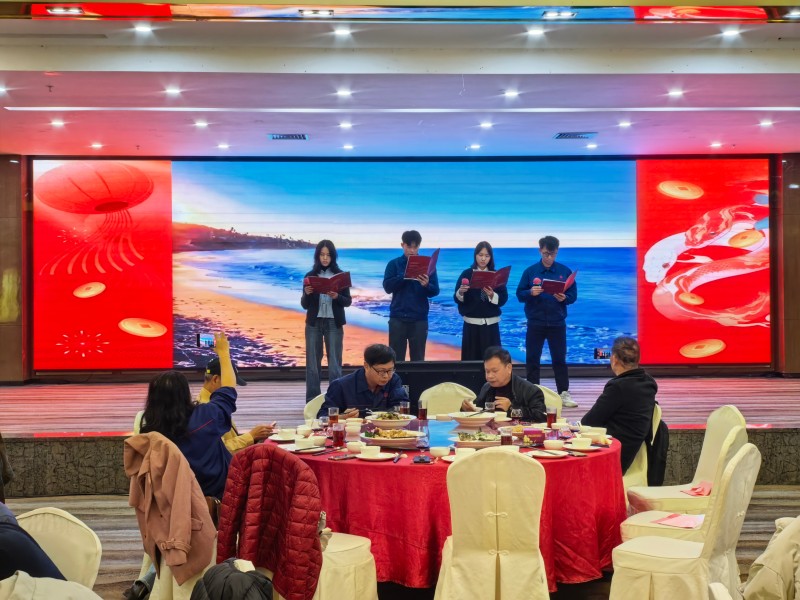 为了营造更加欢乐祥和的节日氛围,团拜会还设置了丰富多彩的联欢活动和抽奖环节。员工们纷纷登台献艺,用歌声和舞姿表达了对新一年的美好祝愿。随着一个个幸运奖项的揭晓,现场气氛逐渐升温,欢声笑语此起彼伏。