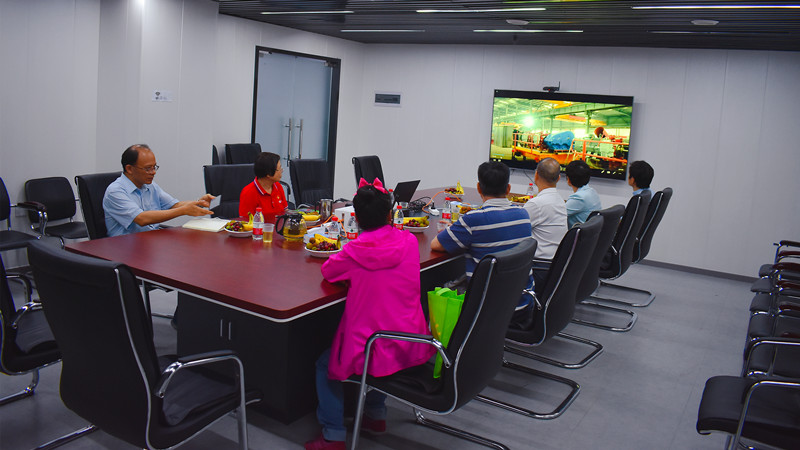 广起向行业协会领导汇报了广起近年来企业转型升级,数字化转型的情况。协会领导观看了企业发展历程和规划的视频,听取了广起集团智能运数据中心和起重机远程监测的介绍。