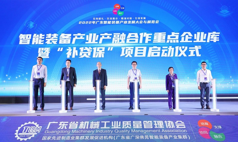 作为特邀嘉宾,黄海珊董事长与其他重点企业负责人一同上台参加了“智能装备产业产融合作重点企业库项目启动仪式”。