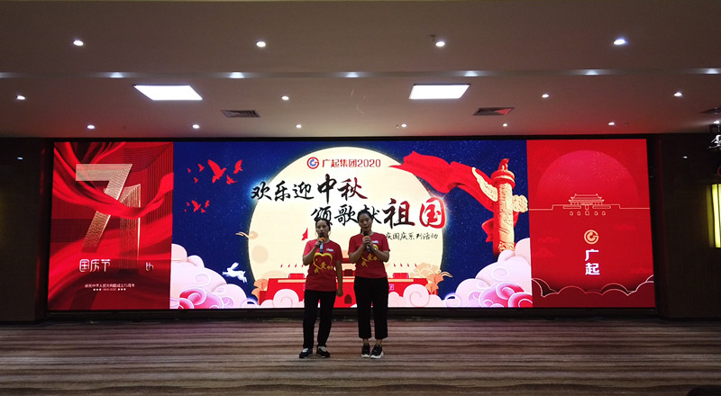 9月27日广起集团一年一度的“迎中秋、庆国庆”系列活动,在云浮基地如期举行。今年活动的主题“欢乐迎中秋,颂歌献祖国”,旨在展现广起集团员工积极进取,奋力拼搏,用于争先的精神面貌,打造富有特色的广起文化。因为新冠肺炎疫情的加入,今年的庆祝活动较往年增加了新的元素和更浓郁的爱国情怀。