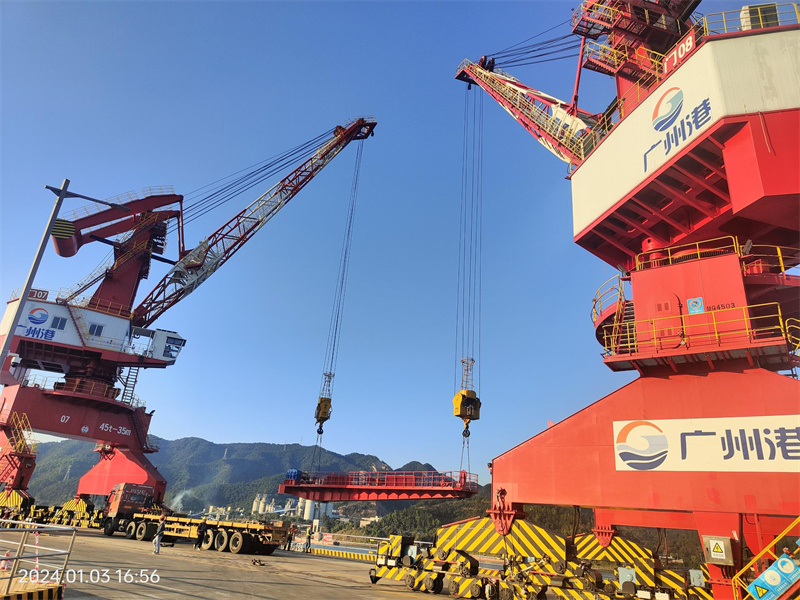 由于上下小车和维修吊的尺寸大、重量重,装船的广州港码头需要采用两台门座吊抬吊的方式进行作业,难度大且危险性高。当我们在欢度元旦假期的时候,负责装船工作的廖思源在项目经理的指挥下,带领班组成员,积极配合广州港的起吊人员进行装船作业。他们发扬不怕艰苦,连续作战的精神,从1月1日开始厂内装车到码头装船,一直奋战至1月4日凌晨3时,顺利完成了装船任务。他们用实际行动展现了无比的敬业和责任心,感谢他们的付出,他们这种无私的奉献值得我们学习和点赞。