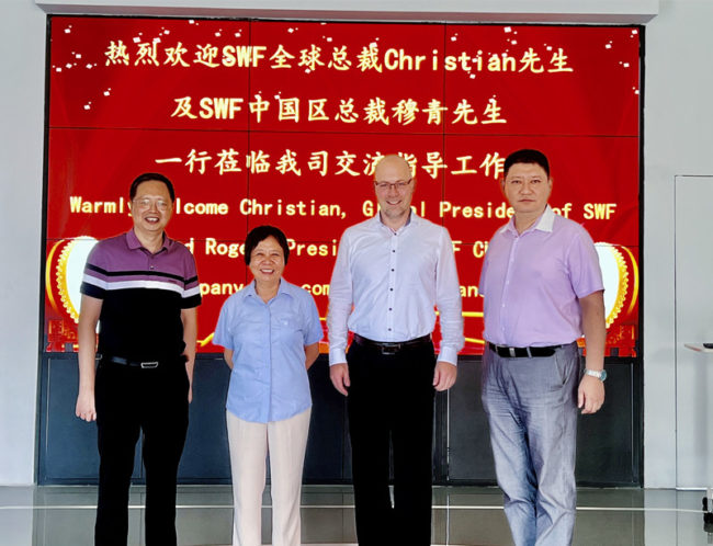 2023年7月13日广起集团黄海珊董事长、泰克力陈正道总经理在我司云浮生产基地接待了德国SWF全球总裁Christian Heid先生和SWF中国区董事总经理穆青先生一行的到访。SWF是全球起重机和起升设备行业的业界领先者。泰克力起重机作为广起集团的合资品牌,长期以来保持着与SWF的紧密合作关系。